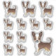 El original ilustracion personalizado de Destei de un perrito de raza Chihuahua color tricolor chocolate. El diseño se coloca 12 veces sobre la hoja en tres tamaños diferentes. Hay un perro más grande, tres perros medianos y ocho perros pequeños.