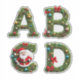 Colorful Christmas wreaths shaped as letters A and B, adorned with pine, ornaments, bows, and a Santa figure. Ideal for holiday themes, family celebrations, and festive branding in stock projects.