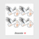 Una cigüeña lleva a un bebé en un paquete. El bebé se toma un selfie usando un celular. Conjunto de 4 pegatinas.
