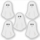 Cinco, blancos, lindos pegatinas fantasmas para añadir a tus fiestas de Halloween, proyectos, sobres y regalos.