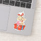This absolutely darling illustration captures a moment of pure holiday joy! Cindy Lou Who, dressed sweetly in pink with her big red bow, is sitting happily atop a large, colorful Christmas present (red with a blue ribbon). Beside her sits her loyal friend, Max the Dog, looking cheerful and sporting his single reindeer antler! This heartwarming graphic perfectly celebrates friendship and the sweet excitement of Christmas morning.