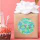 Un moderno y estilizado paisaje invernal con pinos espumosos y copos de nieve brillantes. Pegatina con un diseño de personalizable verde, azul, gris plateado y blanco para que usted pueda personalizar con su propio texto, imágenes e ideas. Dibujo de lápiz de colores realzados digitalmente por Jess Perry.