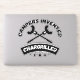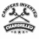 Gracioso camping pegando Campers Inventó Chargrilled. Salchichas de barbacoa en los tenedores de camping. Excelente para los amantes del camping, gente al aire libre en tu vida.