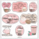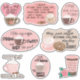 El set de 8 pegatinas ofrece una variedad de diseños de taza de café en rosa, marrón, melocotón y beige, con diferentes citas.