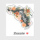Descubra su estado natal o su lugar de vacaciones favorito con este lindo pegatina de contorno de Florida con un mapa de siluetas del estado adornado con coloridas flores tropicales, follaje verde y jugosos naranjas. El nombre del estado está inscrito dentro de la escritura con letras a mano.