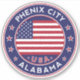 Phenix City Alabama, pegatina de la ciudad de Phenix con bandera de los Estados Unidos, forma redondeada