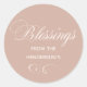 Sella tu tarjeta o regalo con una pegatina de "Bendiciones". Edite fácilmente la plantilla con su propio nombre. Vea nuestra colección para obtener más excelentes ideas de envoltorios. Pegatina redonda clásica Beige Bendiciones. Color Beige Rubor D2AFA1.