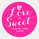 Pegatina personalizada de amor rosa caliente con un corazón de acuarela rosa sobre el mensaje de amor es dulce. Podrás personalizar fácilmente con nombres y fecha. Sería un toque colorido para tu boda moderna, ducha, aniversario y más.
