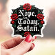 Haz una declaración de fe audaz con esta pegatina clásica No Hoy Satanás con letra gótica y rosas rojas. Ideal para decorar portátiles, botellas de agua, fundas de teléfono, diarios o incluso tu espacio de trabajo. Impresa en vinilo premium con detalles nítidos y acabado brillante. Un regalo perfecto para cristianos con actitud o cualquiera que necesite un recordatorio diario para mantenerse fuerte. Mantén esas malas vibras a raya con estilo.