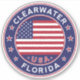 Clearwater Florida, City of Clearwater pegatina con bandera de Estados Unidos, forma redondeada