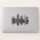 Este perfil en tinta negra de Cleveland, Ohio, resalta la arquitectura de la ciudad con una autorreflexión.