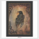 Raven sobre el fondo de las baldosas de piedra. Los engranajes del reloj alrededor del borde.