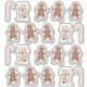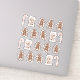 Conjunto de 20 pegatinas incluyendo doce galletas de pan de jengibre con tres expresiones diferentes, cuatro casas de jengibre y cuatro latas de caramelo. Perfecto para envolver galletas de Navidad en esta temporada navideña o entretener a los niños mientras esperan a que horneen. Elige tu tamaño. Disponible en pegatinas blanco mate, blanco brillante o transparente.