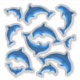 Grupo de pegatinas con forma de delfines saltando. Pegatinas de delfines grandes y pequeños de color azul oscuro que se pueden utilizar en fiestas de "bajo el mar" para decorar, o usar como obsequios, o incluir en invitaciones / papelería de fiesta. Se sugiere el tamaño más grande o los delfines pueden ser muy pequeños.