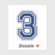 Número tres pegatinas. Tipo de letra del colegio deportivo, cualquier color personalizado. Puede cambiar el color del número con la herramienta de personalización. El alfabeto completo y los números 0-9 están disponibles.