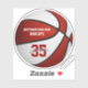 Este pegatina personalizado de baloncesto presenta la imagen realista de un baloncesto que tiene paneles alternados de color rojo y blanco en los que se puede personalizar el nombre y número de camiseta del atleta, además del nombre de la escuela o club y el nombre de la mascota - por katz_d_zynes