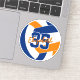 Este equipo de pegatina de voleibol de colores muestra la imagen de un voleibol azul, naranja y blanco, sobre el cual puedes personalizar el número y nombre de la camiseta del atleta - por katz_d_zynes