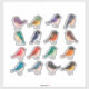 A lively collection of twelve cartoon-style bird stickers in bright colors. Ideal for kids crafts, scrapbooks, or classroom décor, conveying friendship, playfulness, and nature-inspired charm.