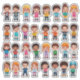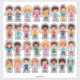 Vibrant cartoon stickers depict diverse children and a smiling mascot, some wearing masks. Perfect for education, kids crafts, health awareness, and positive messaging in media and classrooms.