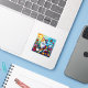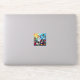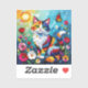 A sweet sticker with a cute illustration of a colorful abstract cat surrounded by flowers, butterflies and the sun in a paper quilling impasto style.