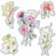 Añade un toque de flores silvestres a estos pegatinas con ramos acuarelas florales en rosa, azul, amarillo y naranja con vegetación. Tres arreglos florales verticales, y dos grupos florales, para una variedad de usos.