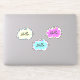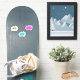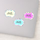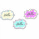 Texto de saludo negro sobre el diseño de burbujas coloridas.