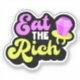 Coma a los ricos: una declaración anticapitalista que se puede tomar como quieras, política, filosófica o literalmente. Un estilo neorretro novato con un texto violento morado y amarillo drippy. Acentuado con un dulce rebote de dulce dulce dulce de caramelo Pop Ring.