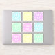 Decoren recipientes para comida y bebida o cajas de almuerzo con pegatinas pastel bonitos que lean "Come Me", "Bébeme", "Try Me" y mensajes "Take Me" dentro de una frontera victoriana con trajes de póquer (pala, corazón, club, diamante) en cada esquina. Estos pegatinas a prueba de agua son perfectos para la decoración fiesta, los accesorios para niños, los viveros y los encantadores decorativos de las cocinas. El conjunto pegatina Pastel incluye azul, rosa, púrpura, amarillo y verde.