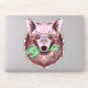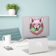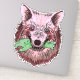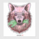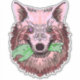 Ilustración audaz de lobo con estilo surreal: pelaje rosa y rojo, ojos penetrantes y disparejos, y un giro macabro al sujetar una mano de zombi. Un diseño vívido y simbólico perfecto para los fanáticos del arte de fantasía oscura y merchandising impactante