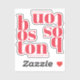 Muestra tu amor por Boston, Massachusetts con este llamativo pegatina tipográfico moderno. El diseño presenta la palabra "Boston" dividida en tres líneas en negrita, letras en minúsculas decorativas, resaltadas en rojo vibrante. Las opciones de texto en personalizable en una fuente elegante y delgada sans serif añaden un toque sutil y contemporáneo, haciéndolo perfecto para la personalización. Ideal como un conservador vacacional, calcomanía de ordenador portátil, acento decorativo o una elegante marca para un evento o negocio con sede en Boston. Tanto si eres un orgulloso bostoniano, un visitante frecuente, como simplemente un fanático de esta ciudad icónica, este pegatina único le aporta un toque moderno a tu amor por Boston.