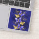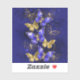 Composición de lujosas mariposas de zafiro y joyas de oro sobre fondo de textura azul.