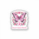Hermosa mariposa rosa con flores de acuarela y un pegatina rosado de la cinta de sensibilización sobre el cáncer de mama. Personalízalo para ti o para un ser querido. Disponible en tamaños desde 2 x 2 pulgadas hasta 14 x 14 pulgadas