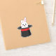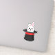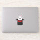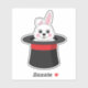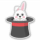 Un ilustracion de un lindo conejito blanco mirando al gorra mago negro con acento rojo. Este adorable diseño de conejo blanco es un regalo para los amantes de la magia, los magos, los amantes del conejo, la madre de piel, el padre de piel, los amantes de mascotas y los amantes de los animales.