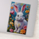 Pegatina Conejo blanco adorable rodeado de flores vibrantes