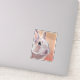 Un primer plano de un conejo pintado con un gouache muestra detalles intrincados de su piel suave y ojos oscuros expresivos, capturando la expresión curiosa y serena del animal.