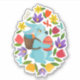 Pegatina Conejo Cute de Pascua 2 flores de primavera