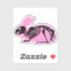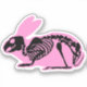 Un conejo rosa con un esqueleto negro crea un adorable diseño animal. Se muestra aquí en un pegatina de corte de besos disponible en varios tamaños. Utilícelo para decorar portátiles, álbumes, estuches de teléfono, portátiles y más. ¡Diversión para cualquiera que le guste un toque espeluznante!