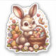 Conejo de chocolate, huevos, cesta y flores con albornoces de época.