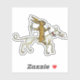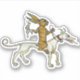 Pegatina Conejo medieval montando perro y sosteniendo carac