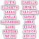 Conjunto de stickers de 16 nombres editables en rosa intenso, lista de invitados para graduación, cumpleaños, despedida de soltera, lista de nombres para niñas exploradoras, porristas, equipo deportivo, grupo de baile, coro, clase, se puede usar para bolsas de favores o sellos de sobres, o para decoración de planificador, diario, álbum de recortes, papelería, envío y otros proyectos creativos.