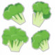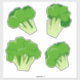 Conjunto de diferentes pegatinas de brócoli verde cuadrado. Ideal para vegetarianos y amantes del brócoli.