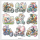 Pegatinas del Conjunto de Pascua de conejitas moteras 1. © Elige una pegatina. Esta hoja de pegatinas tiene adorables conejitas moteras de Pascua montando motocicletas y scooters.