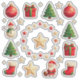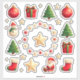 Colección de stickers navideños con Santa, adornos, cajas de regalo, árboles e iconos festivos. Perfecto para decoración navideña, manualidades y tarjetas, transmitiendo alegría, familia y ambiente festivo.
