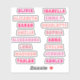 Pegatina Conjunto personalizado de 16 nombres de niña rosa