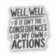¡Abraza el caos con este pegatina hilarante! Con la frase "Bueno, bueno, si no son las consecuencias de mis propias acciones", este pegatina es perfecto para los que aman el humor negro, el ingenio autodespectivo o sólo una buena dosis de realidad. Póngalo en su portátil, botella de agua, portátil o en cualquier lugar en el que necesite un recordatorio de que a veces la vida te lanza una bola curva (y puede ser tu propia culpa). ¡Este pegatina de vinilo duradero está hecho para perdurar en todas tus desventuras!