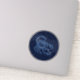 Pegatina con el símbolo de Scorpio en azul plateado suave, cubierto con las estrellas de la constelación, contra un fondo estrellado del cielo clasificado de azul oscuro a negro