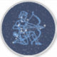 Pegatina con el símbolo de Sagittarius en azul plateado suave, cubierto con las estrellas de la constelación, contra un fondo estrellado del cielo clasificado de azul oscuro a negro