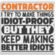 Un Contratista Gracioso Dice "Contratista Intento Hacer Que Las Cosas Sean Pruebas Idiotas, Pero Siguen Haciendo Mejores Idiotas". Agarra este diseño de Contractor Gracioso como un regalo gracioso para una mamá, papá o amigo formidable.