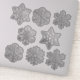 Pegatinas en una variedad de copos de nieve silínicos falsos metálicos de plata con un ligero efecto 3-d elevado