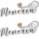 Pegatinas cortados (2 en hoja) con un diseño guionado elegante presenta la bandera de Menorca en un corazón.